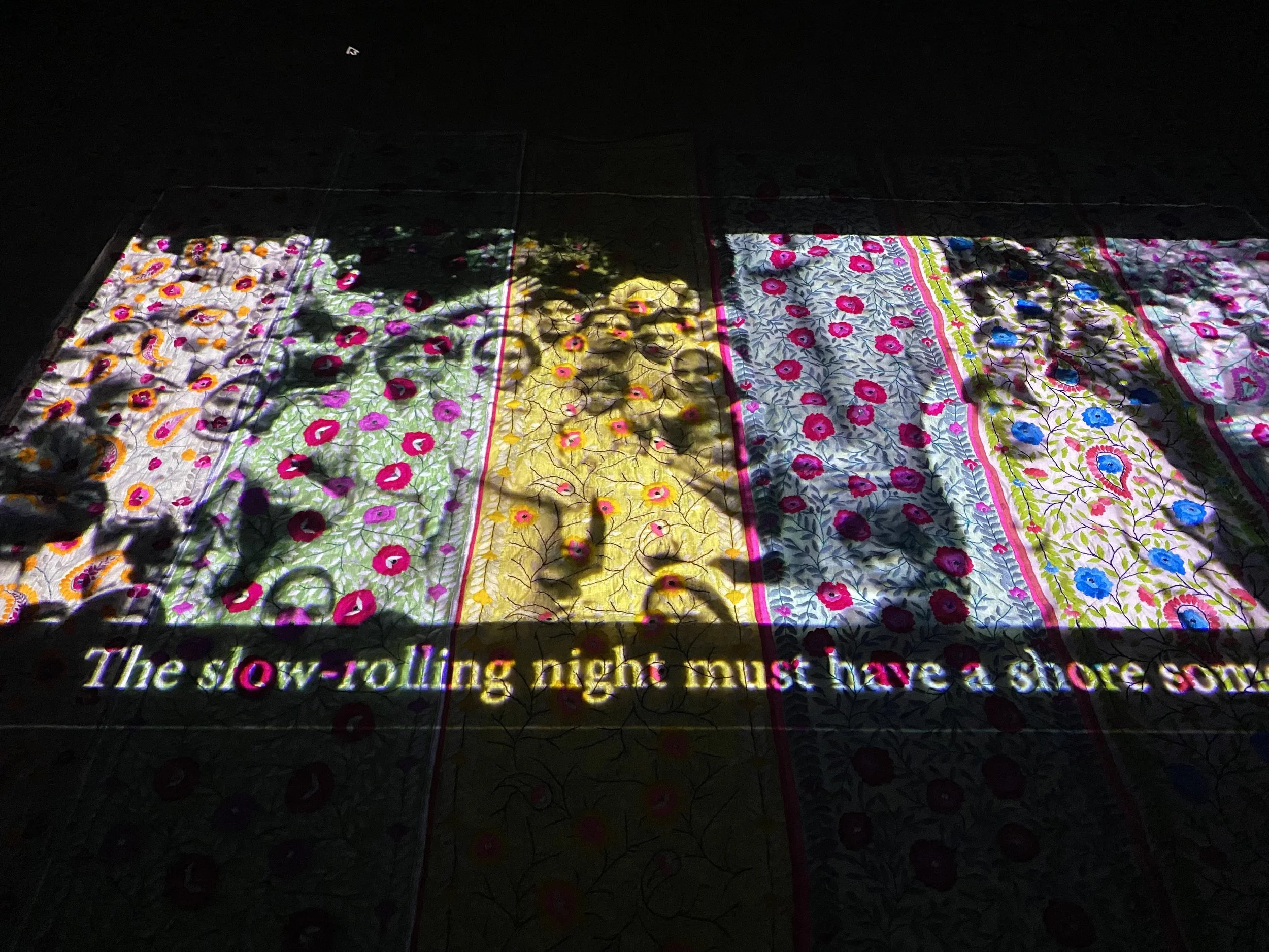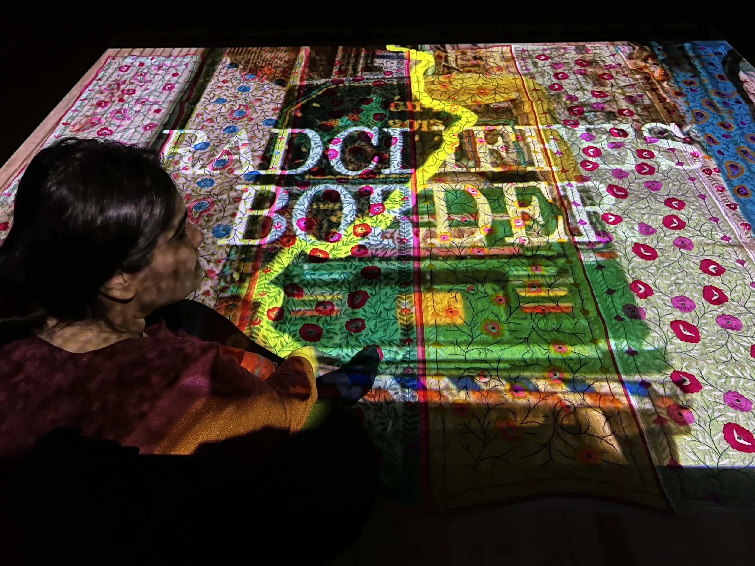 Owing to my undergrad in Fashion Technology I decided to use traditional handmade fabric, Phulkari from Punjab, India which also happened to be one of the regions that experienced the most violence and mass migration during Partition and where my ancestry lies. I created a Phulkari Canvas using pieces I collected from the Artisans as a base for projection mapping.